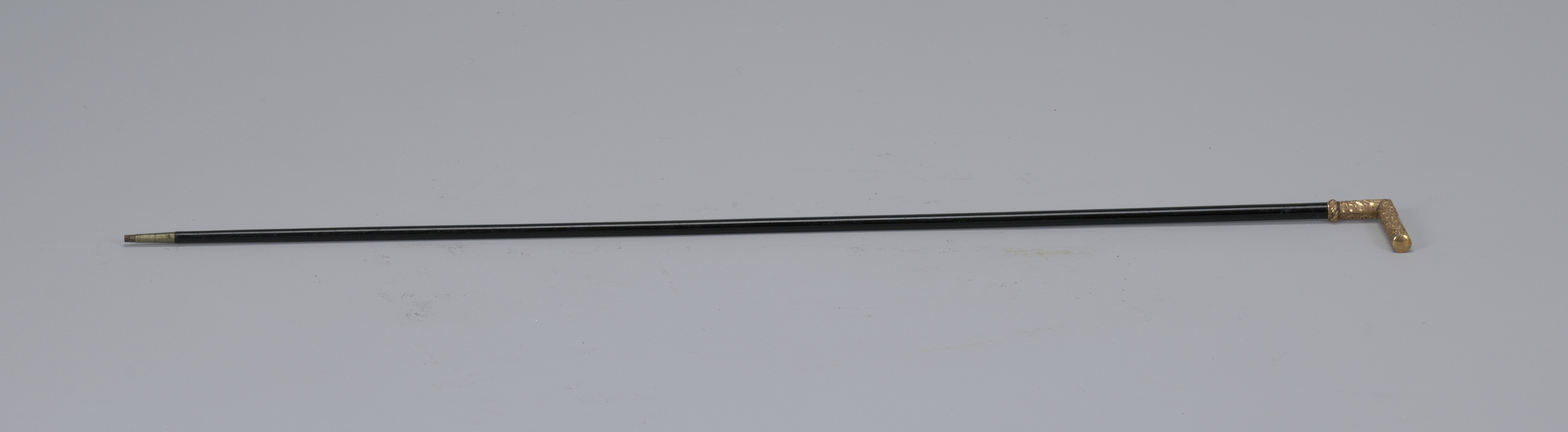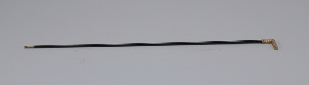 This is a stick. It was made by Henry Rado. It is dated late 19th century and we acquired it in 1957. Its medium is god, bakelite. It is a part of the Product Design and Decorative Arts department.