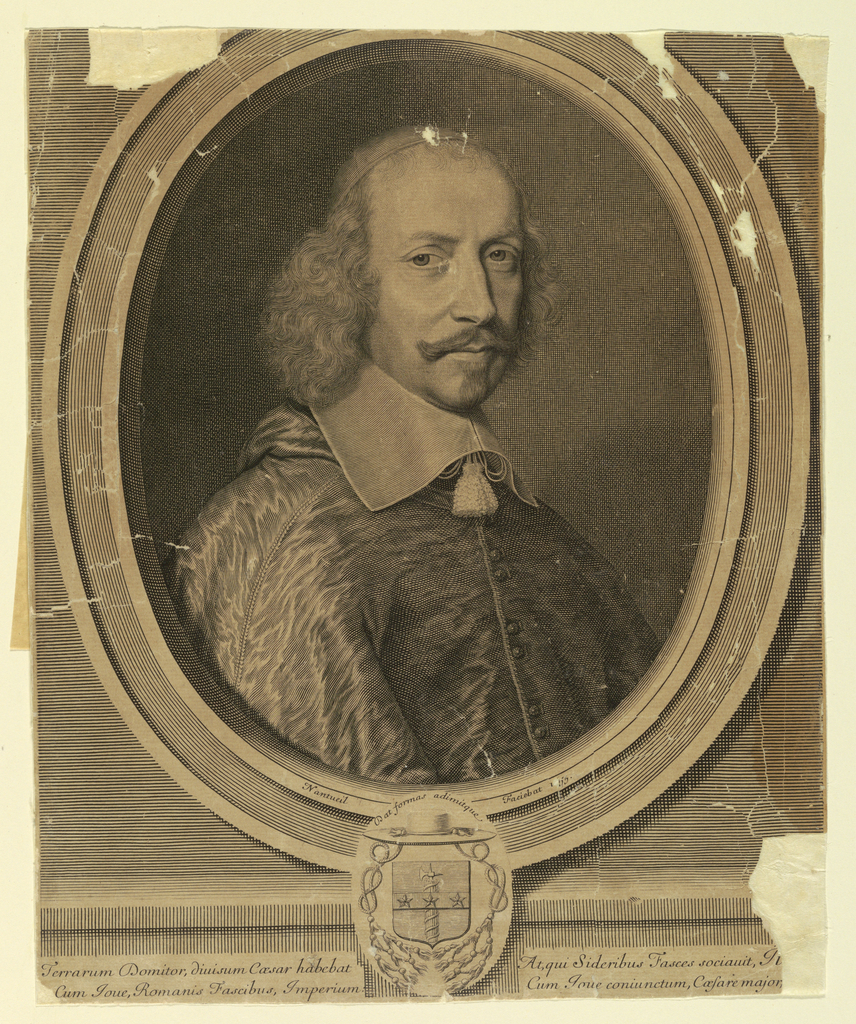 Print, Portrait of Cardinal Mazarin; Print Maker: Robert Nanteuil; France; engraving on paper; 30.4 × 24.4 cm (11 15/16 × 9 5/8 in.); 1957-41-74