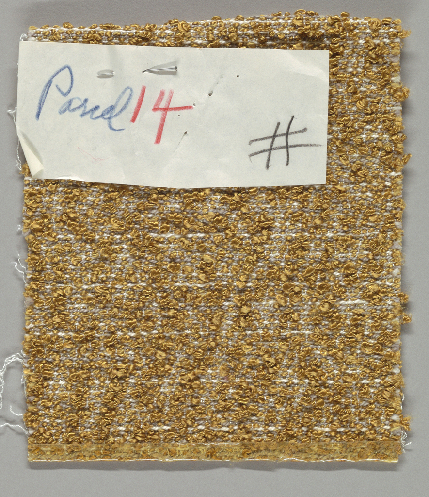 This is a Sample. It was designed by Helen Kroll Kramer and woven by Helen Kroll Kramer. It is dated 1930–58 and we acquired it in 1958. Its medium is synthetic and its technique is twill woven. It is a part of the Textiles department.