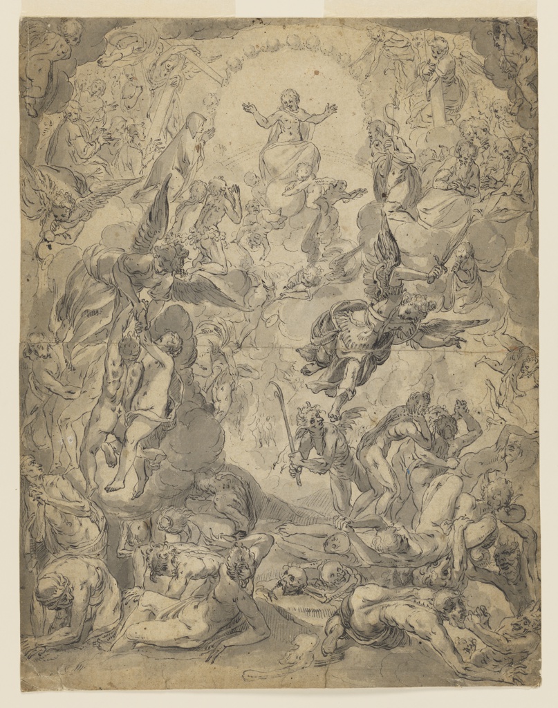 Drawing, The Last Judgement; Germany; pen and ink, brush and gray wash on laid paper; 48.9 × 37.8 cm (19 1/4 × 14 7/8 in.); Gift of Hugh Cassel; 1958-143-24