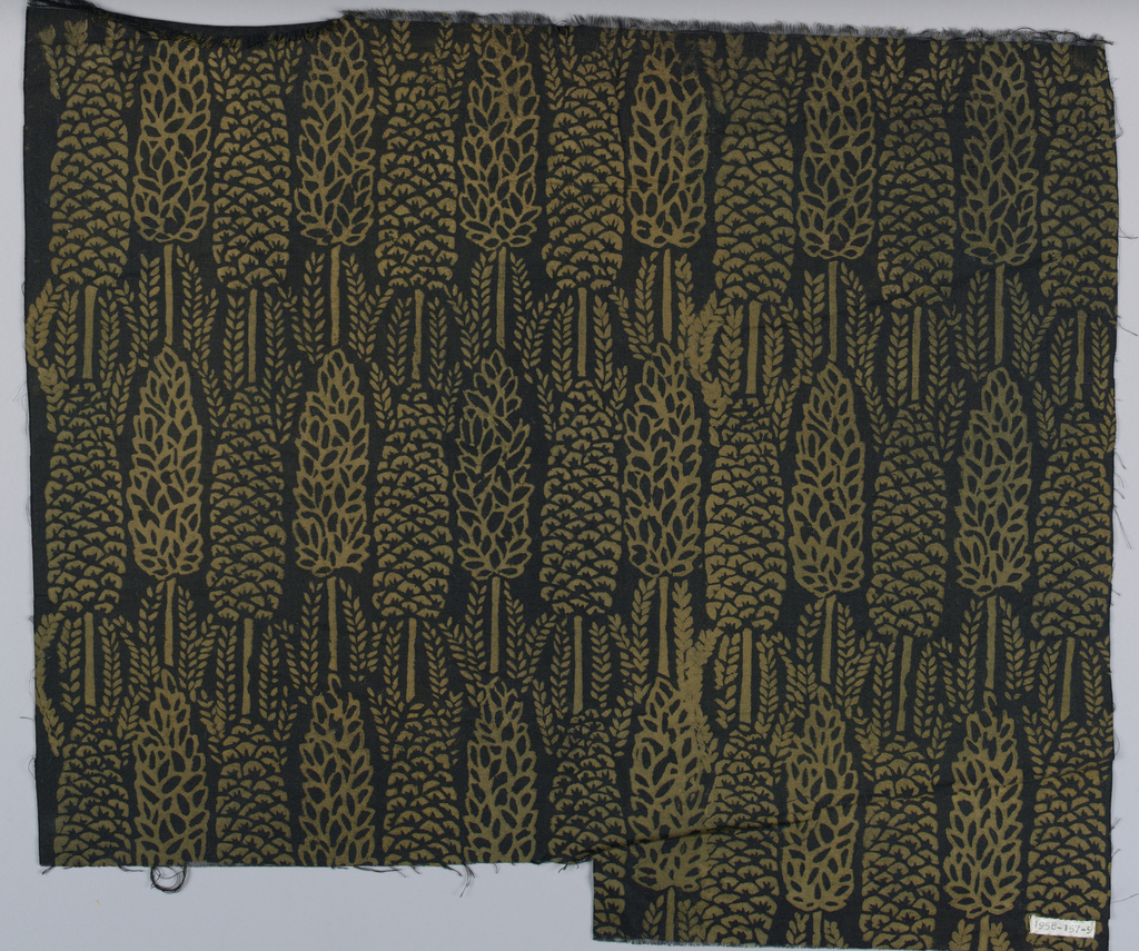 This is a Textile. It is dated 1900–1958 and we acquired it in 1958. Its medium is cotton and its technique is block printed. It is a part of the Textiles department.