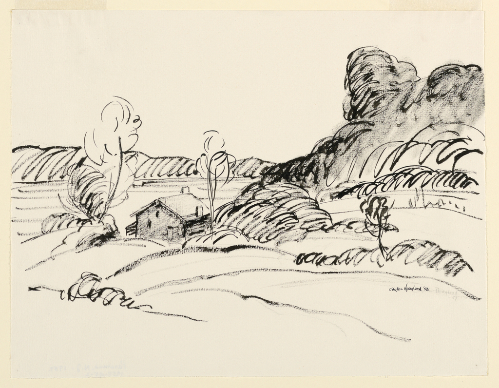Signed in pen and black ink, lower right: Clayton Hoagland '58; signed in graphite, below [faintly]: Clayton Hoagland / -57