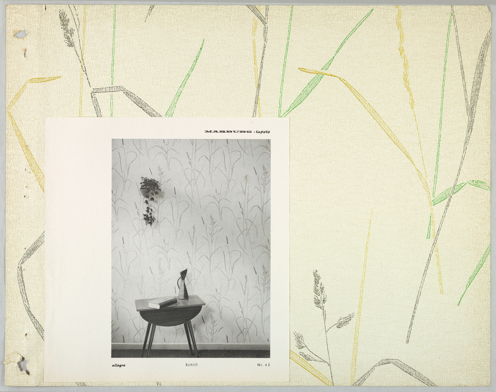 This is a Sidewall. It was manufactured by Marburger Tapetenfabrik. It is dated 1958 and we acquired it in 1958. Its medium is machine-printed. It is a part of the Wallcoverings department.