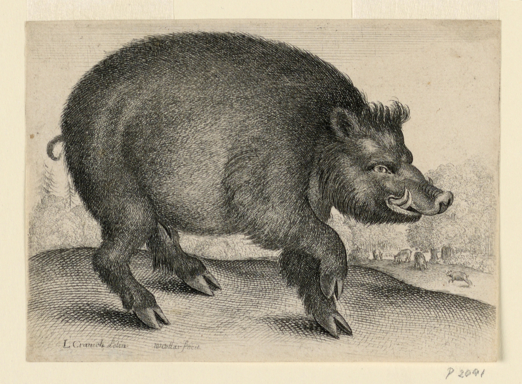 Print, A Boar; Printed by Wenceslaus Hollar (1607–1677); After Lucas Cranach the Elder (German, 1472 – 1553); England; etching on paper; 9.5 × 13 cm (3 3/4 × 5 1/8 in.); Gift of Milton Einstein; 1959-49-111