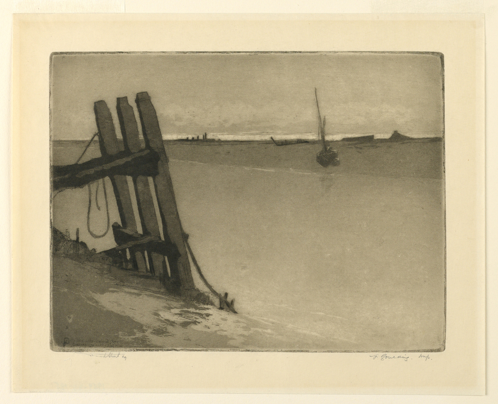 Inscribed in plate, lower left: Over such a wide watered shore / swinging slow with sullen rock. Inscribed in graphite, lower left margin … think 09; lower right: F. Coulding imp.