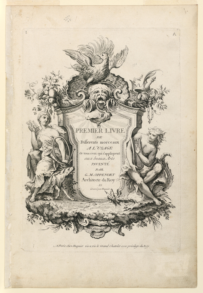 <ref name=CH>{{cite web |url=https://www-6.collection.cooperhewitt.org/objects/18428287/ |title=Print, Title Page from "Premier Livre De Differents morceaux A l'Usage de tous ceux qui s'appliquent aux beuax Arts Inventé Par G.M. Oppenort Architecte du Roy Et Gravé par Huquier," Serie A (Moyen Oppenord) |author=Cooper Hewitt, Smithsonian Design Museum |accessdate=19 December 2025 |publisher=Smithsonian Institution}}</ref>