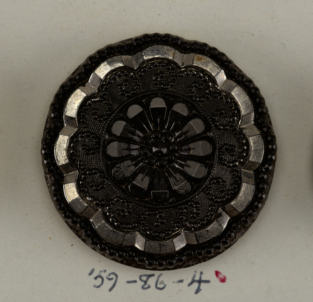 This is a Button. We acquired it in 1959. Its medium is other. It is a part of the Product Design and Decorative Arts department.
