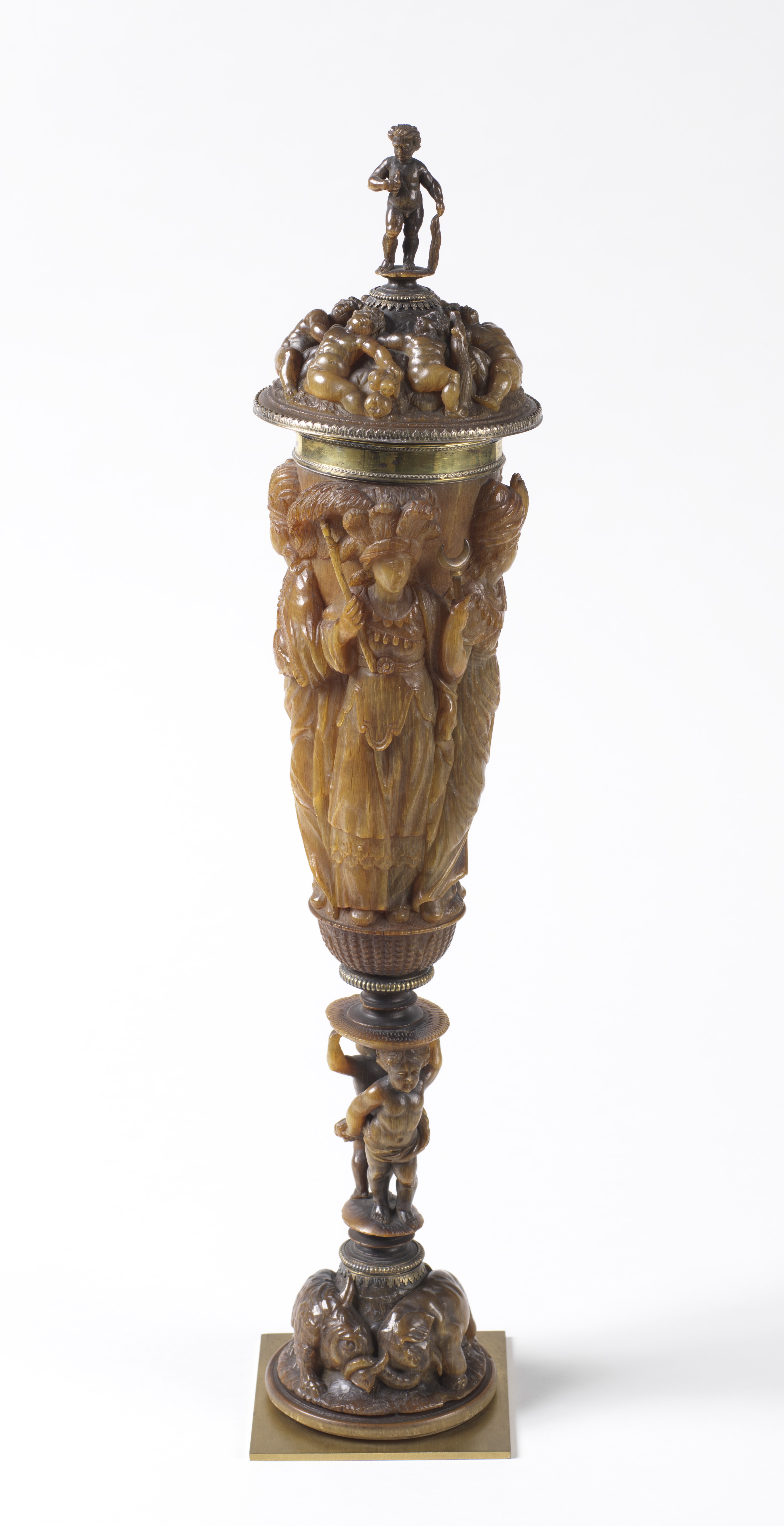 Cup And Cover; rhinoceros horn mounted in silver-gilt; H x diam.: 51 x 11 cm (20 1/16 x 4 5/16 in.); Gift of the Estate of James Hazen Hyde; 1960-1-25-a,b