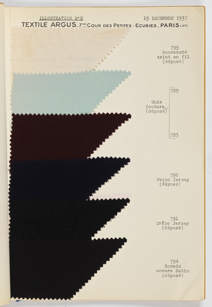 This is a Sample book. It was made by Textile Argus. We acquired it in 1960. It is a part of the Textiles department.
