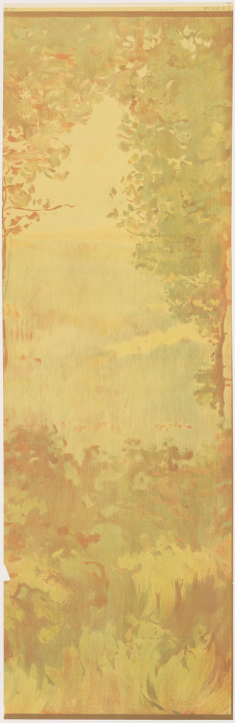 Scenic - Panel, Birkenheim; Manufactured by The Schmitz-Horning Co.; USA; chromo-lithographed; 104 x 50 cm (40 15/16 x 19 11/16 in.); Gift of Wallpaper Council, Inc.; 1960-163-23-a,b