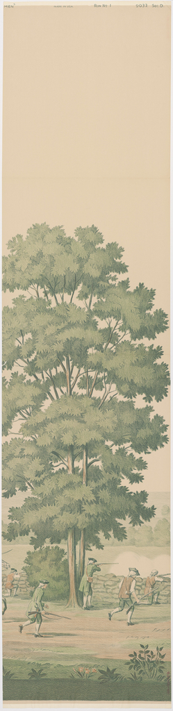 Scenic - Panel, The Minutemen; Produced by The Schmitz-Horning Co.; chromolithograph; 208 x 49.5 cm (81 7/8 x 19 1/2 in.); Gift of Wallpaper Council, Inc.; 1960-163-95