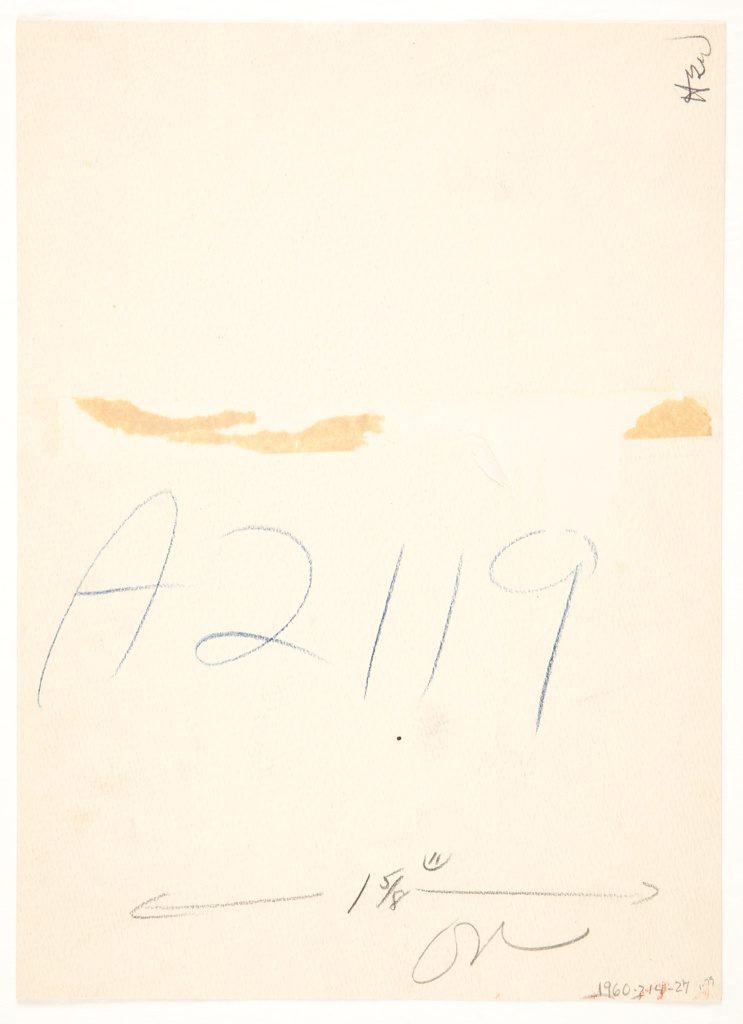 Drawing, Design for a Spot for The New Yorker; Christina Malman (American, b. England, 1911–1959); Client: The New Yorker Magazine; USA; brush and ink, white gouache, graphite on heavy cream paper; 35.9 × 25.9 cm (14 1/8 × 10 3/16 in.); 1960-214-27