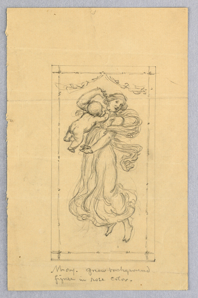 Inscribed in graphite, lower center: May. green background / figure in rose color.