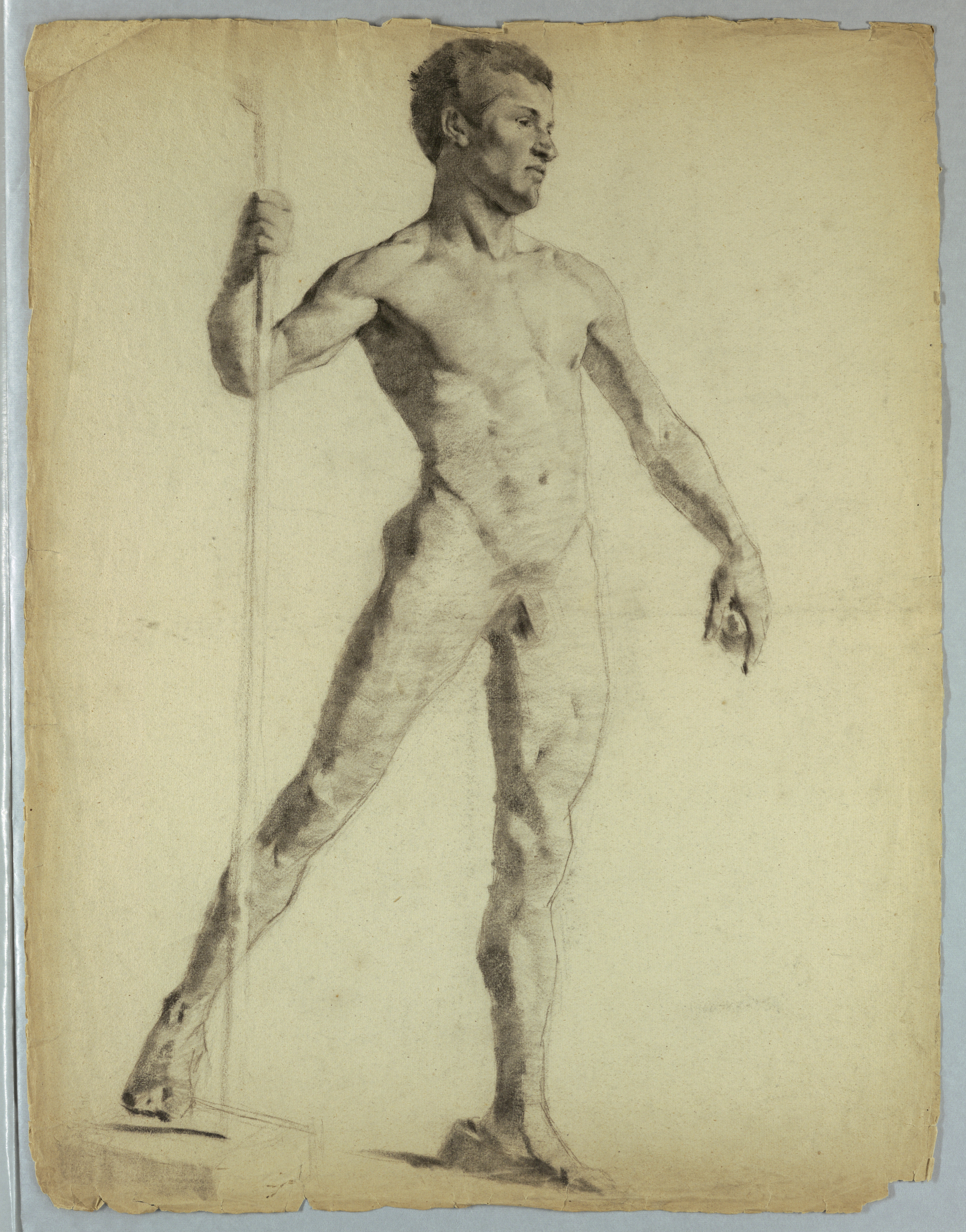 Drawing, Nude Study of Man Walking; Kenyon Cox (American, 1856–1919); USA; charcoal on paper; 63.7 × 49 cm (25 1/16 × 19 5/16 in.); Gift of Allyn Cox; 1960-83-340