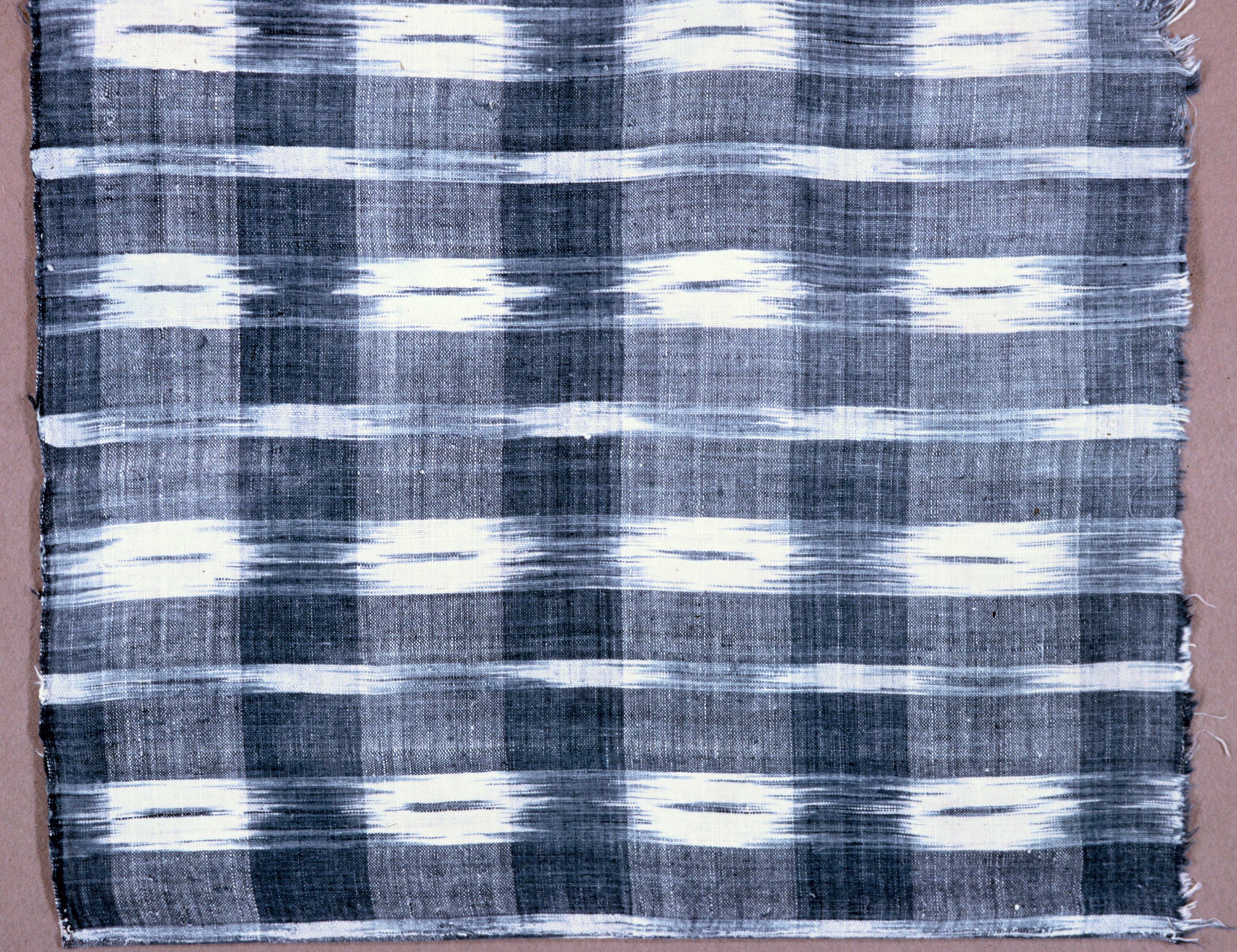 This is a Textile. It is dated early 19th century and we acquired it in 1960. Its medium is cotton and its technique is warp and weft resist (ikat) on handwoven plain weave. It is a part of the Textiles department.