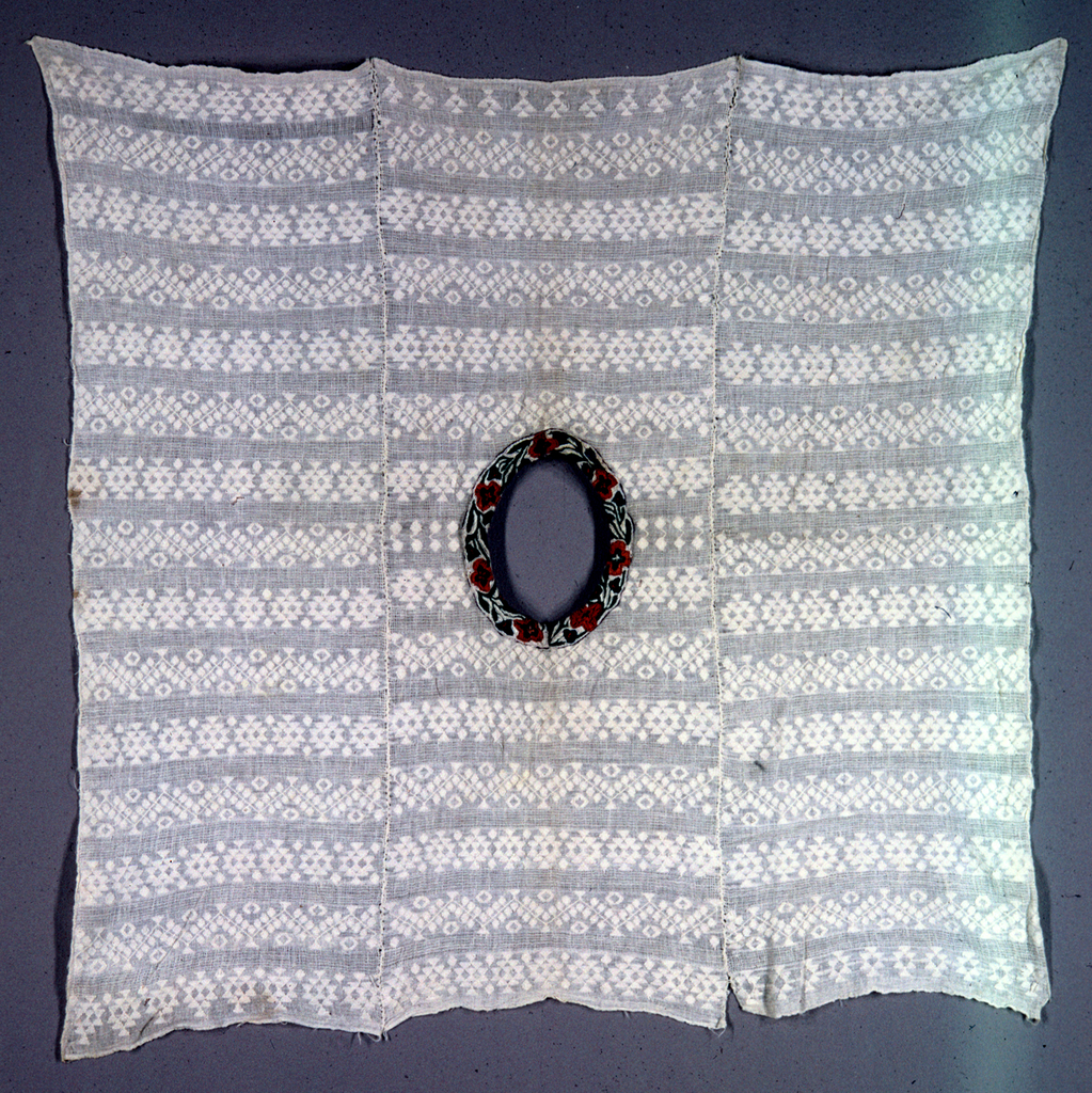 This is a Huipil (blouse). It is dated 20th century and we acquired it in 1960. Its medium is cotton and its technique is plain weave with supplementary weft. It is a part of the Textiles department.