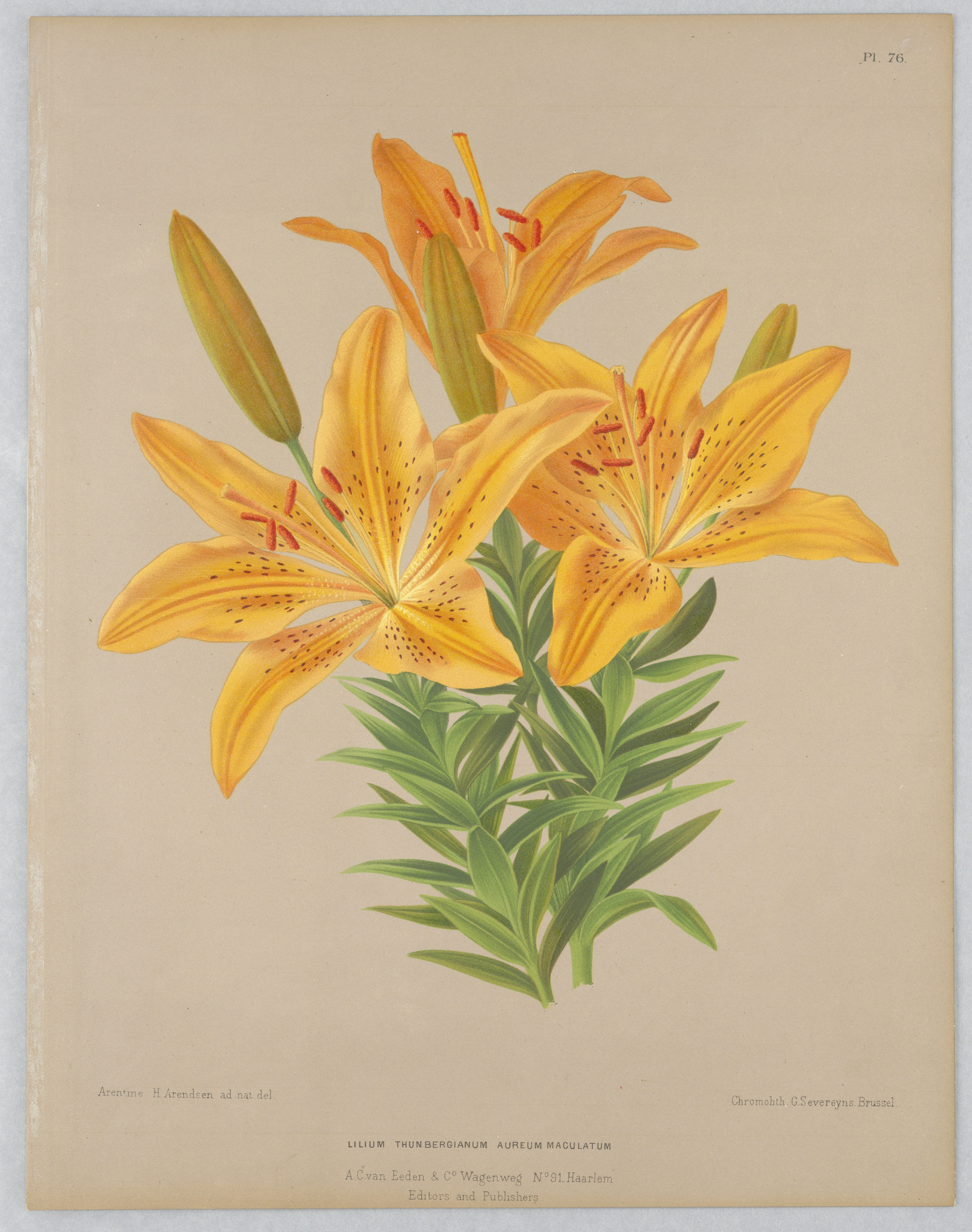 Print, Lilium Thunbergianum Aureum Maculatum, Plate 76 from A. C. Van Eeden's "Flora of Haarlem"