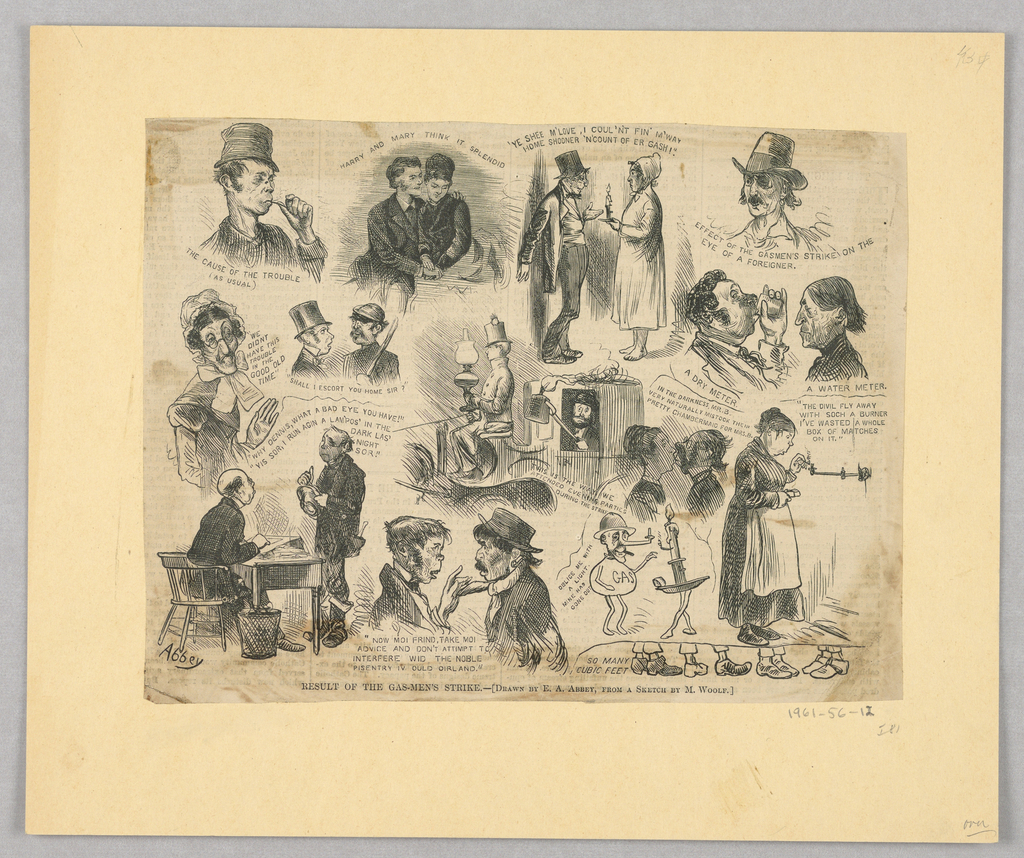 <ref name=CH>{{cite web |url=https://www-6.collection.cooperhewitt.org/objects/18439701/ |title=Print, Result of the Gas-Men's Strike, Illustration for Harper's Weekly (XVII, April 26, 1873) |author=Cooper Hewitt, Smithsonian Design Museum |accessdate=20 December 2025 |publisher=Smithsonian Institution}}</ref>