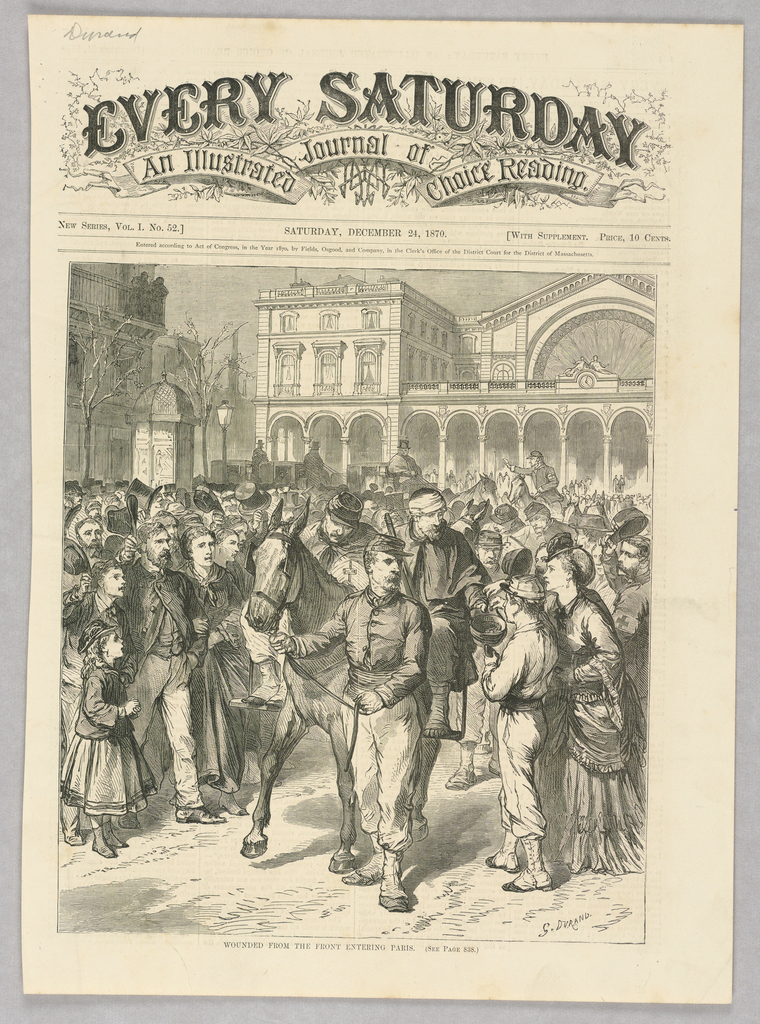 Print, Wounded from the Front Entering Paris, Illustration for Every Saturday (I, Decemberr 24, 1870); Published by Every Saturday; USA; wood engraving in black ink on paper; 1961-58-1