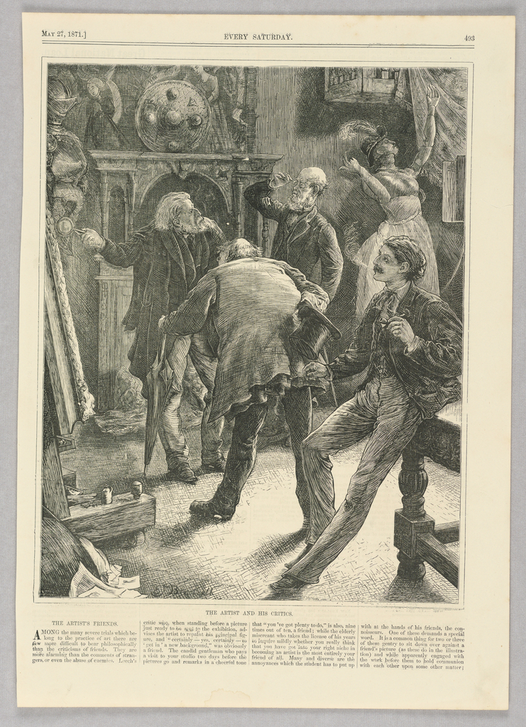 Print, The Artist and His Critics, Illustration for Every Saturday (May 27, 1871, p. 493)
