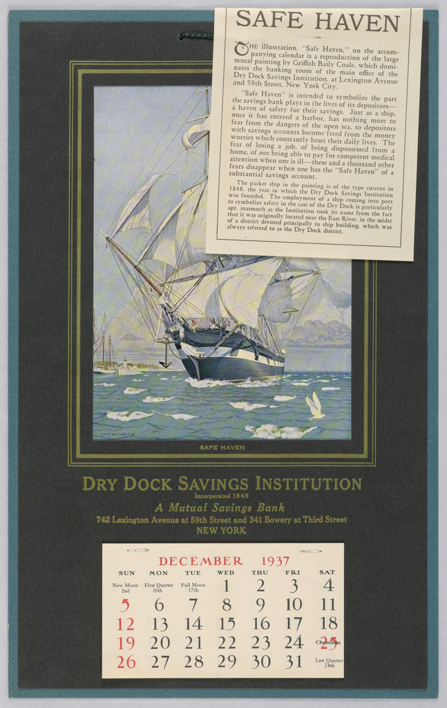 Advertisement, "Taking on the Pilot," Advertisement for Dry Dock Savings Institution, Featuring Mural Design
