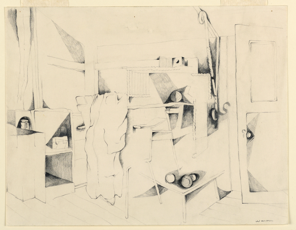Drawing, Design for a Room Interior; USA; graphite on white wove paper; 22.6 x 29.2 cm (8 7/8 x 11 1/2 in. ); Gift of Cooper Union School of Art and Architecture; 1962-138-1