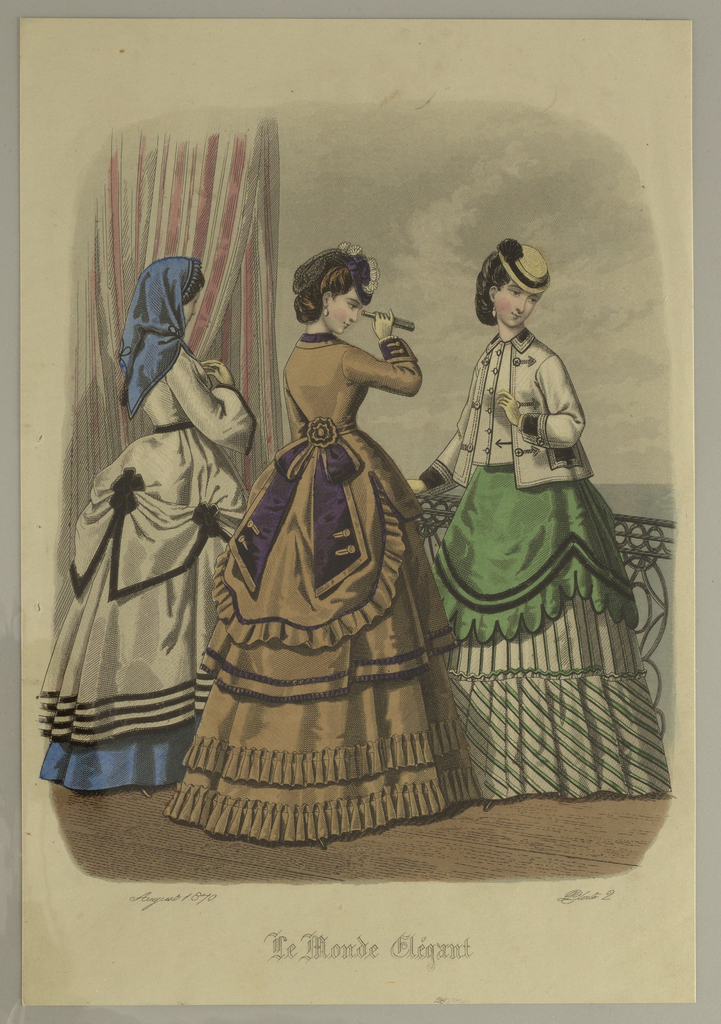 Print, Fashion Plate from Le Monde Elégant; wood engraving, brush and watercolor on paper; 27.4 × 18.7 cm (10 13/16 × 7 3/8 in.); Gift of Hamill and Barker; 1962-143-19