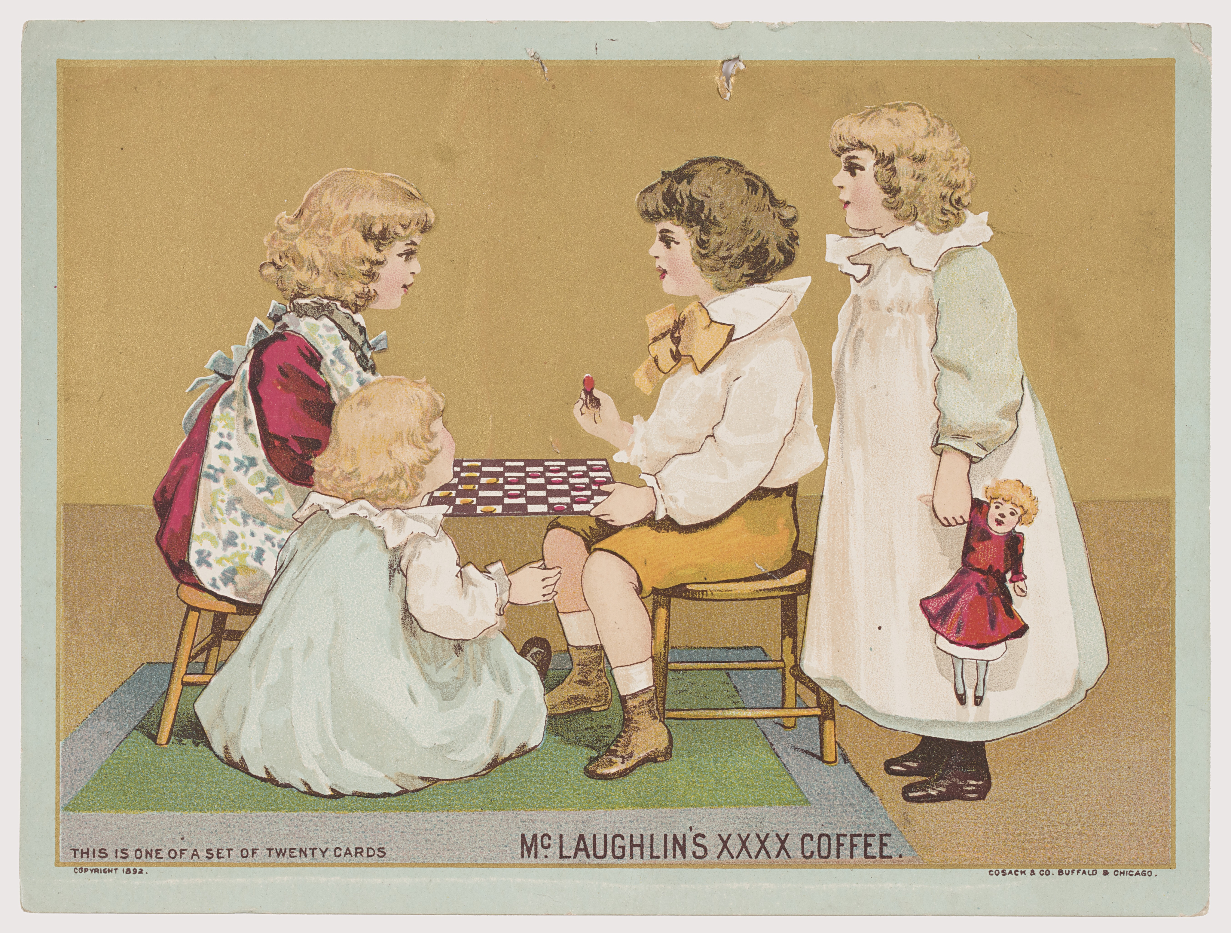 Printed in black, bottom left: THIS IS ONE OF A SET OF TWENTY CARDS / COPYRIGHT 1892; in black, bottom center: McLAUGHLIN'S XXXX COFFEE.; in black, bottom right: COSACK & CO. BUFFALO & CHICAGO.