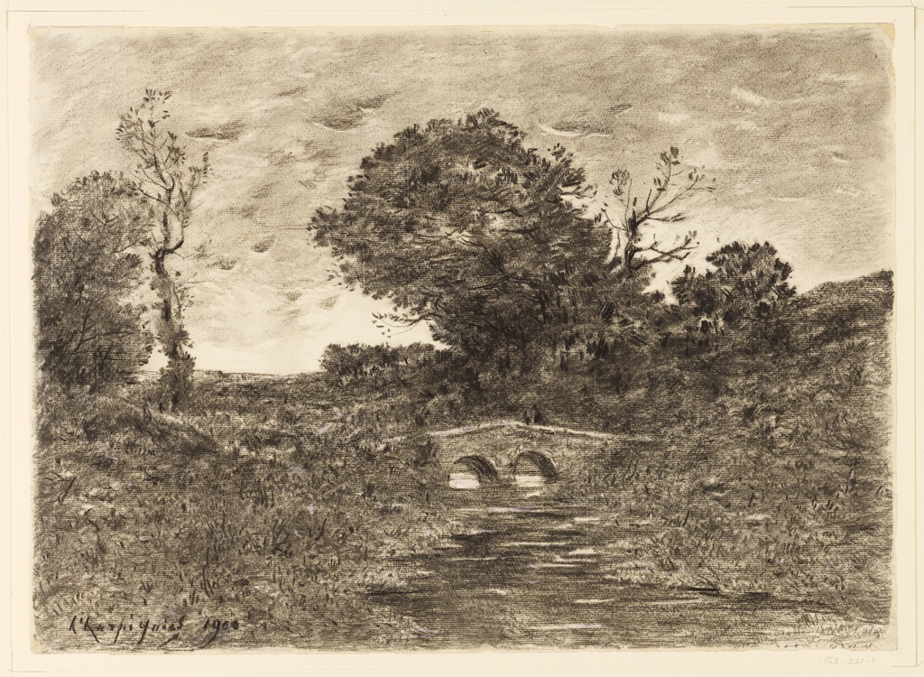 Drawing, Pont à Morlaix; France; charcoal on ribbed white paper; 38.7 × 53.7 cm (15 1/4 × 21 1/8 in.); Gift of Martin Birnbaum; 1962-221-1