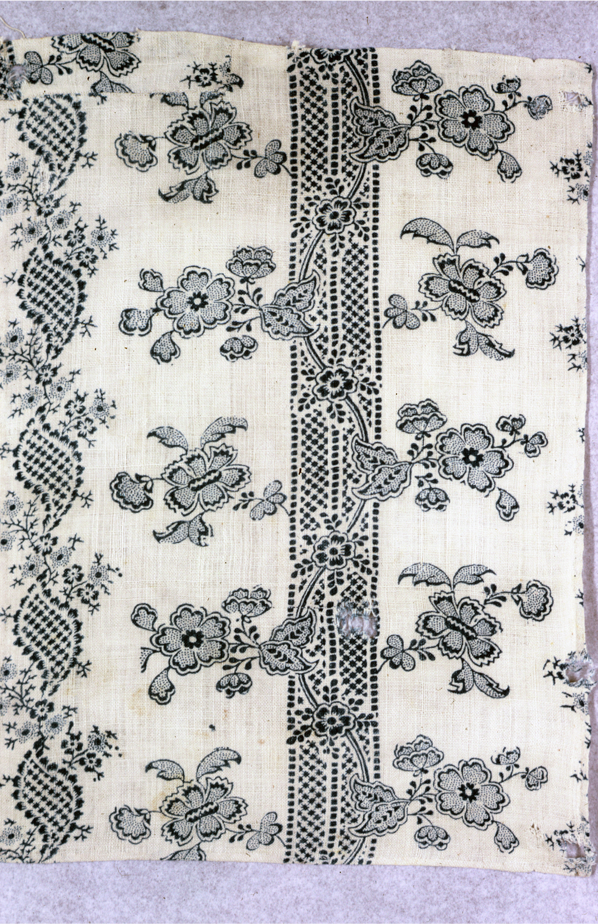 This is a Fragment. It is dated late 18th century and we acquired it in 1962. Its medium is linen and its technique is block printed on plain weave. It is a part of the Textiles department.