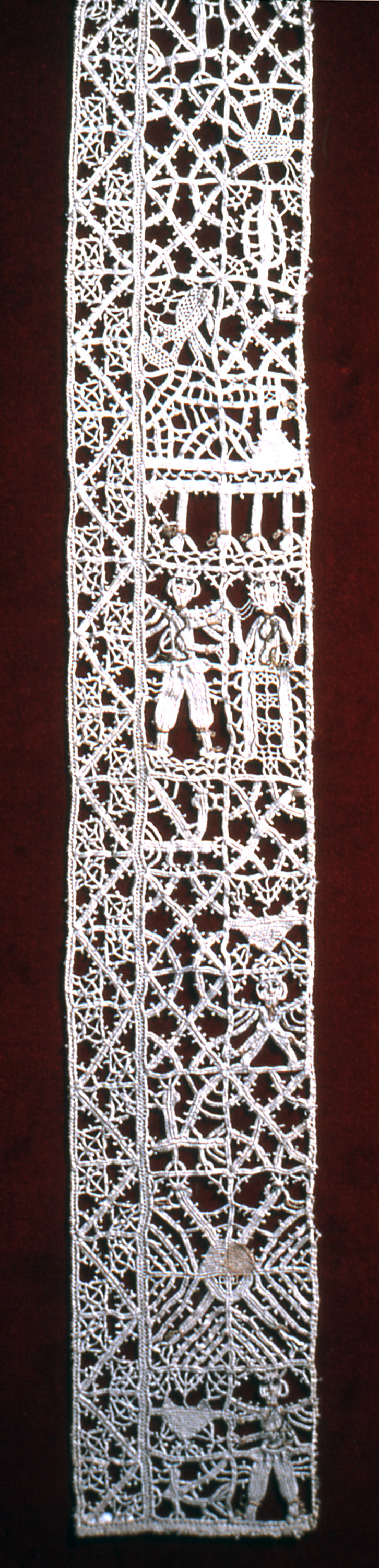 This is a Border. It is dated mid-16th century and we acquired it in 1962. Its medium is linen and its technique is grid of withdrawn element work with needle lace, reticella style. It is a part of the Textiles department.