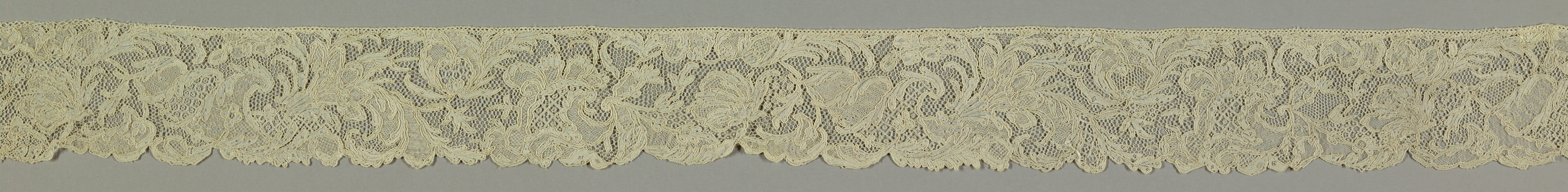 This is a Border. It is dated 1700–1750 and we acquired it in 1962. Its medium is linen and its technique is needle lace with 6 sided reworked lace. It is a part of the Textiles department.
