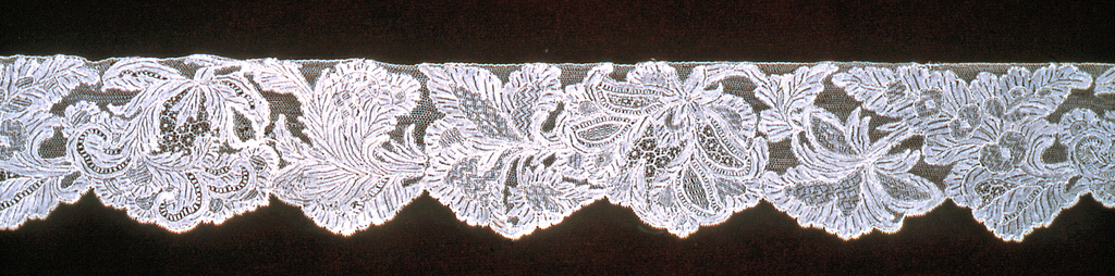 This is a Border. It is dated 1700–1750 and we acquired it in 1962. Its medium is linen and its technique is needle lace with ground of loop and twist with twist return. It is a part of the Textiles department.