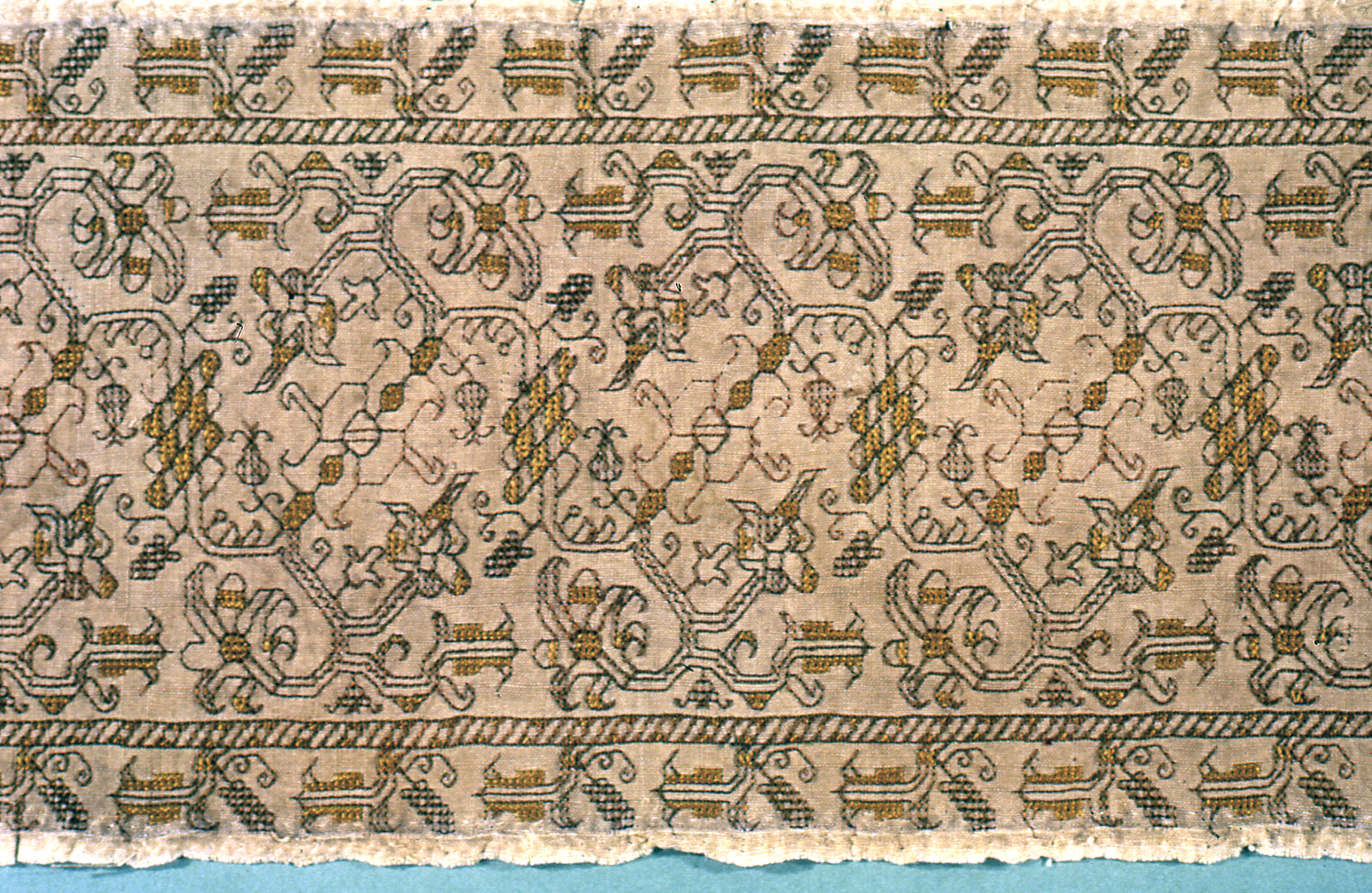 This is a Band. It is dated late 16th century and we acquired it in 1962. Its medium is linen and its technique is embroidered. It is a part of the Textiles department.