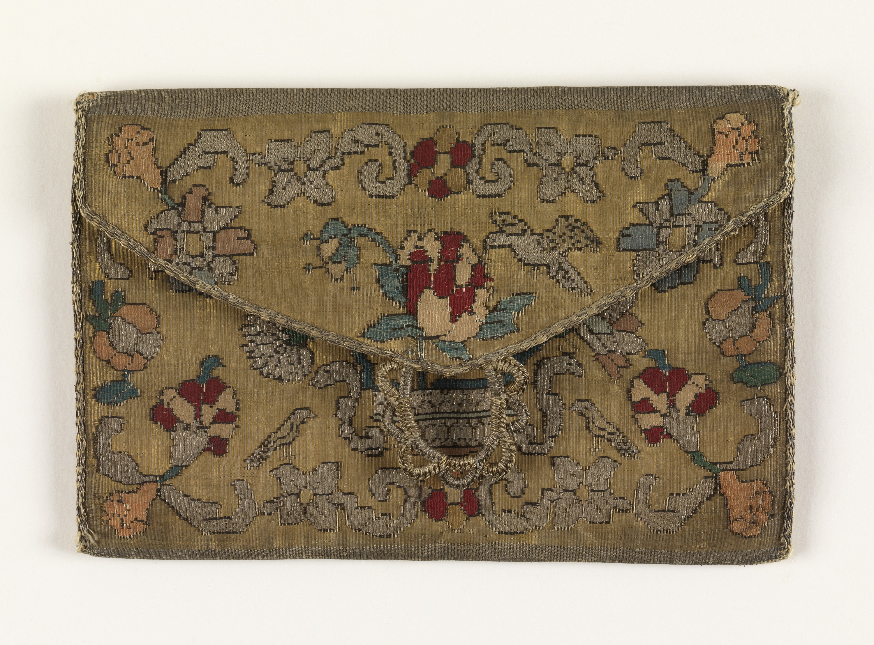 This is a Purse. It is dated 1640–1700 and we acquired it in 1962. Its medium is silk, silver-wrapped silk, silver wire and its technique is tapestry woven. It is a part of the Textiles department.