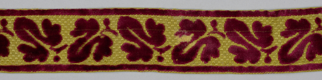 This is a Fragments. It is dated late 18th–early 19th century and we acquired it in 1962. Its medium is silk and its technique is cut and uncut supplementary warp pile (velvet) in a woven foundation. It is a part of the Textiles department.