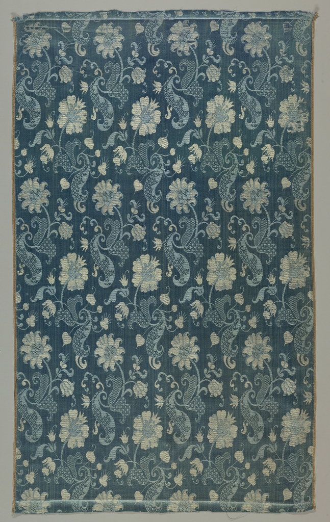 This is a Textile. It is dated 17th century and we acquired it in 1962. Its medium is silk and its technique is float patterned satin; 7&1 satin patterned by weft floats bound on the front as a 1&3 twill. It is a part of the Textiles department.