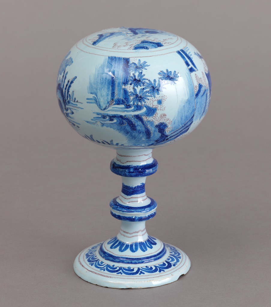 This is a Wig stand. It is dated mid-18th century and we acquired it in 1962. Its medium is tin-glazed earthenware. It is a part of the Product Design and Decorative Arts department.