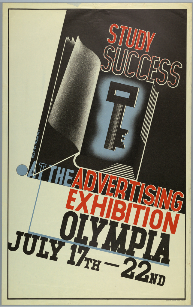Poster, Study Success at the Advertising Exhibition; Designed by Edward McKnight Kauffer (American, active England, 1890–1954); Printed by Haycock Press; Client: Olympia; USA; lithograph on paper; 101.7 × 63.7 cm (40 1/16 × 25 1/16 in.); Gift of Mrs. E. McKnight Kauffer; 1963-39-102