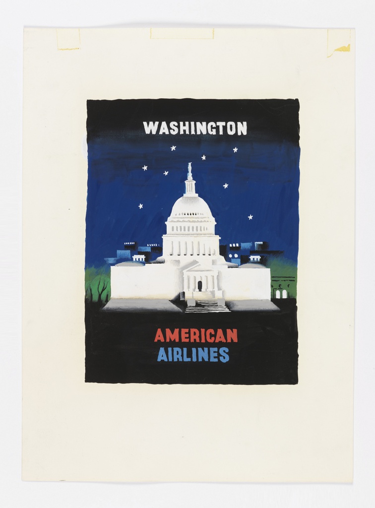 Drawing, Design for "Washington"; Designed by Edward McKnight Kauffer (American, active England, 1890–1954); Client: American Airlines (United States); USA; brush and gouache on paper; 38.3 × 28 cm (15 1/16 × 11 in.); Gift of Mrs. E. McKnight Kauffer; 1963-39-160