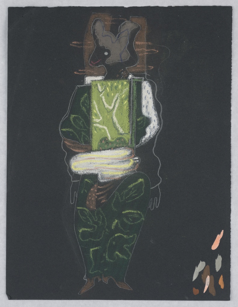 Drawing, Costume Design: Ariel (Possibly), for "The Tempest"; Designed by Edward McKnight Kauffer (American, active England, 1890–1954); Written by William Shakespeare (British, ca. 1564–1616); USA; color crayon on black paper; 31.3 × 24.1 cm (12 5/16 × 9 1/2 in.); Gift of Mrs. E. McKnight Kauffer; 1963-39-213