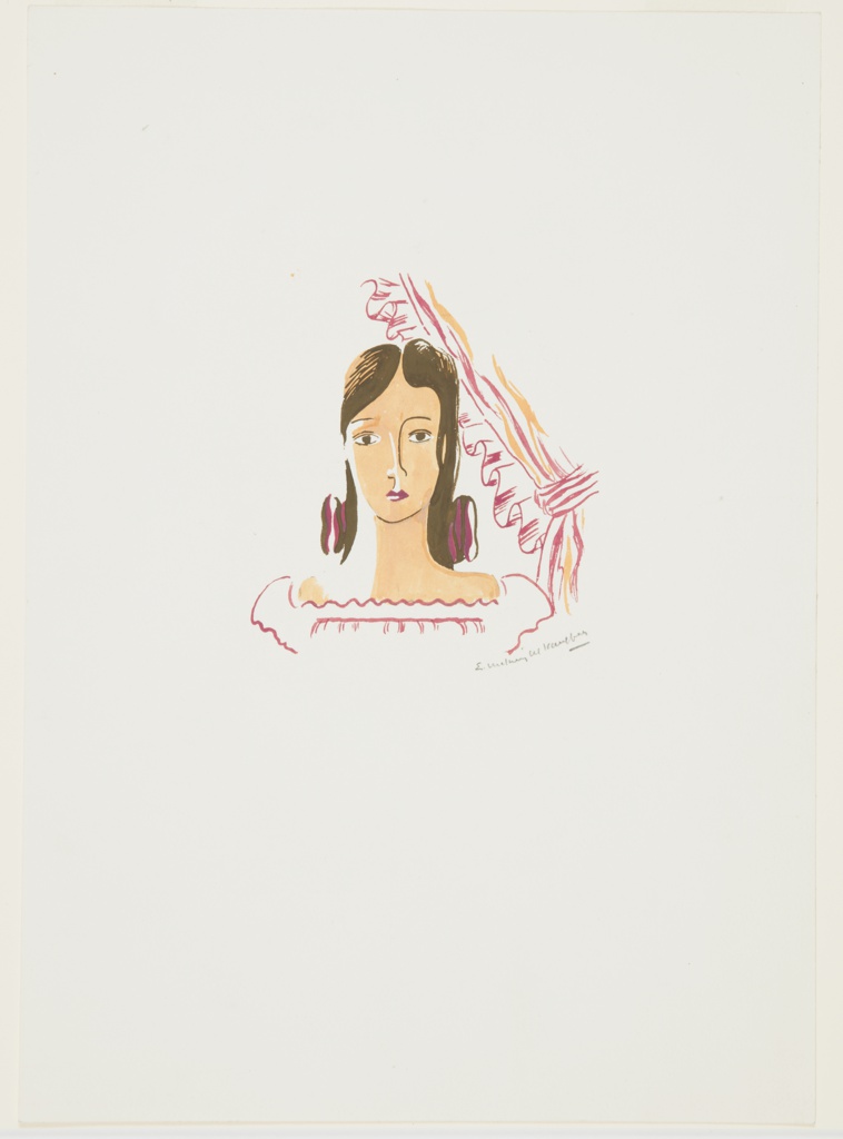 Drawing, Illustration for Elsie and the Child; Designed by Edward McKnight Kauffer (American, active England, 1890–1954); Written by Arnold Bennett (British, 1867–1931); Published by Cassell & Co.; USA; graphite, brush and watercolor, gouache on paper; 33.2 × 23 cm (13 1/16 × 9 1/16 in.); Gift of Mrs. E. McKnight Kauffer; 1963-39-334