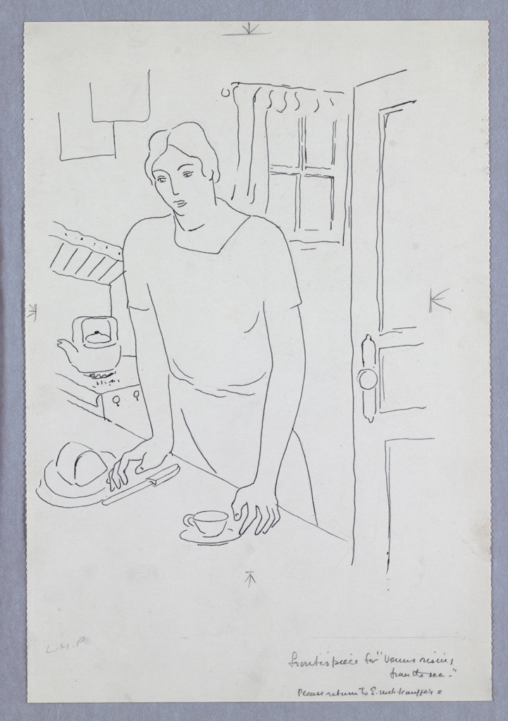 Inscribed in graphite, at lower left corner: L. H. P.; in pen and blank in at lower right corner: frontis piece for "Venus rising / from the sea." / Please return to E. mck. Kauffer = [sic]