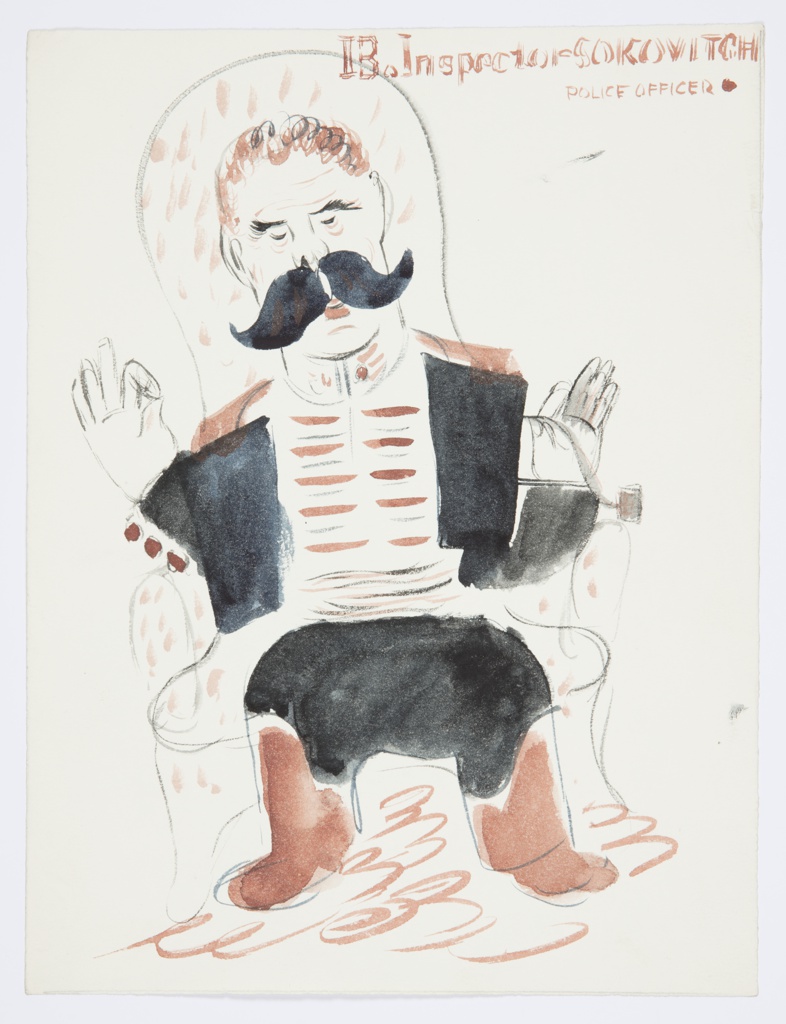 Drawing, Illustration for Benia Krik; Designed by Edward McKnight Kauffer (American, active England, 1890–1954); Written by Isaak Emmanuilovich Babel (Russian, 1894–1940); USA; brush and watercolor on paper; 28.2 × 21.3 cm (11 1/8 × 8 3/8 in.); Gift of Mrs. E. McKnight Kauffer; 1963-39-405