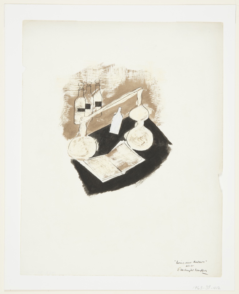 Drawing, Illustration for Lions and Shadows; Designed by Edward McKnight Kauffer (American, active England, 1890–1954); Written by Christopher Isherwood (British-American, 1904–1986); Published by Hogarth Press; USA; brush and watercolor on paper; 30.4 × 24 cm (11 15/16 × 9 7/16 in.); Gift of Mrs. E. McKnight Kauffer; 1963-39-412