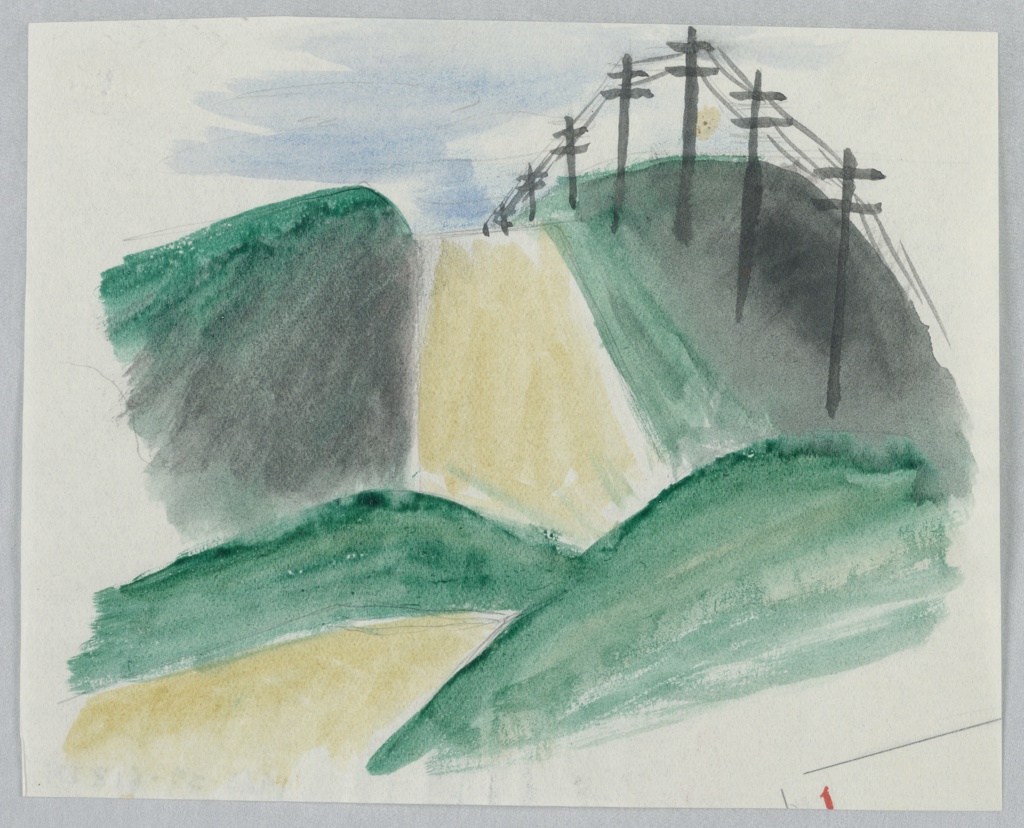 This is a Drawing. It was designed by Edward McKnight Kauffer and made for (as the client) Shell-Mex and BP Ltd.. It is dated ca. 1935 and we acquired it in 1963. Its medium is graphite and watercolor on tracing paper. It is a part of the Drawings, Prints, and Graphic Design department.