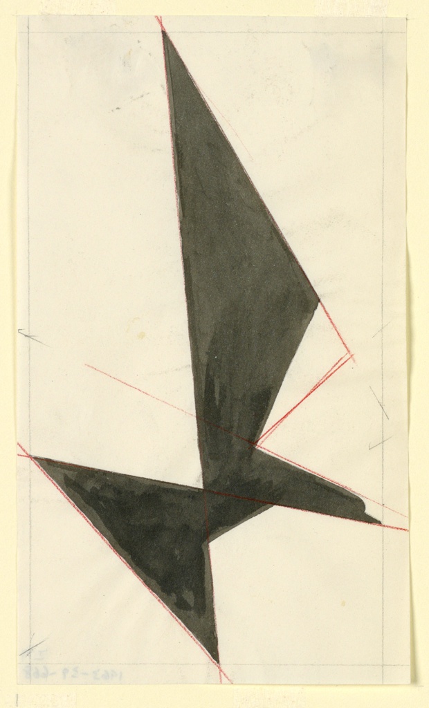 Drawing, Study for Imperial Airways Advertisement; Designed by Edward McKnight Kauffer (American, active England, 1890–1954); Client: British Airways; England; brush and black gouache, graphite, red crayon on thin paper; 16.2 × 9.5 cm (6 3/8 × 3 3/4 in.); Gift of Mrs. E. McKnight Kauffer; 1963-39-668