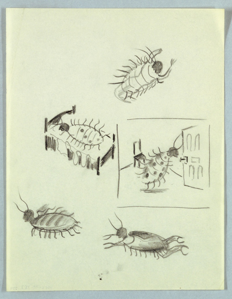 Drawing, Study for The Metamorphosis; Designed by Edward McKnight Kauffer (American, active England, 1890–1954); USA; black crayon on white paper; 26.8 × 20.8 cm (10 9/16 × 8 3/16 in.); Gift of Mrs. E. McKnight Kauffer; 1963-39-757