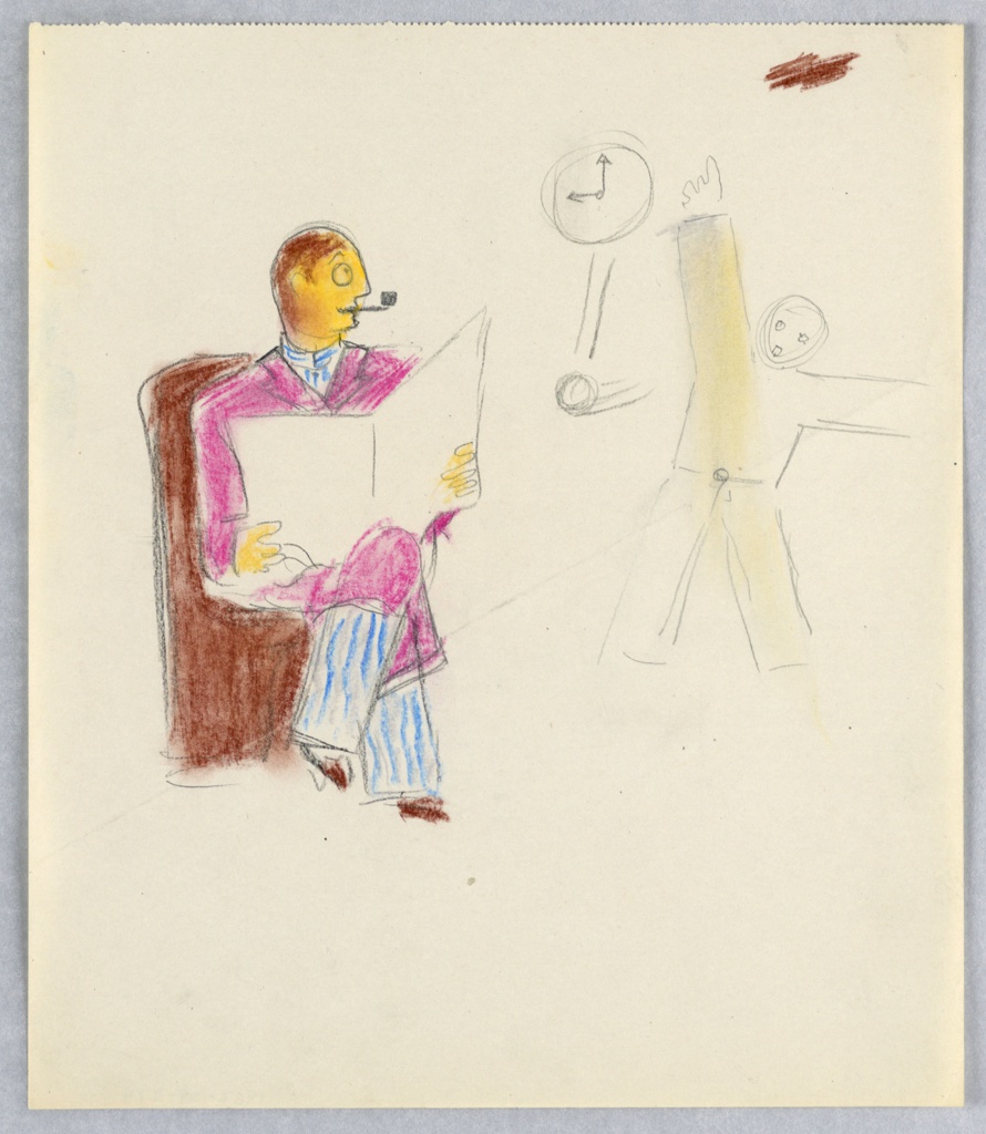 This is a Drawing. It was designed by Edward McKnight Kauffer. It is dated ca. 1935 and we acquired it in 1963. Its medium is graphite, color crayon on paper. It is a part of the Drawings, Prints, and Graphic Design department.