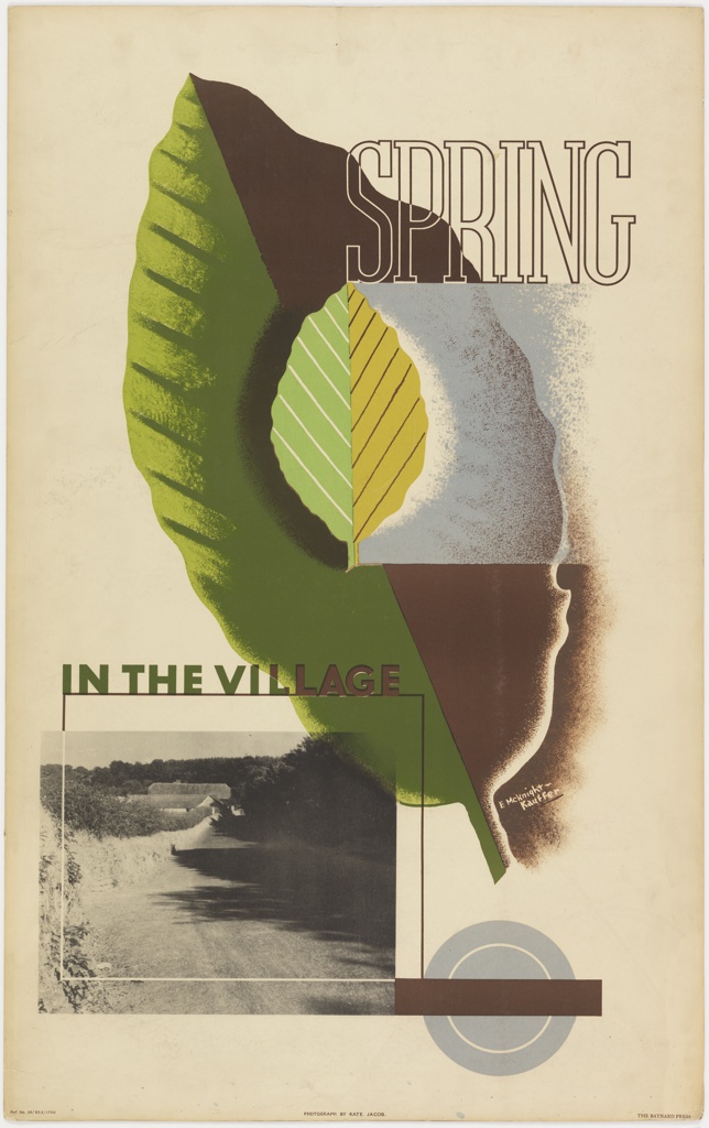 Poster, Spring in the Village; Designed by Edward McKnight Kauffer (American, active England, 1890–1954); Photographed by Kate Jacob (English); Printed by Sanders Phillips and Company, Ltd. at The Baynard Press; Client: London Passenger Transport Board (England, GB, United Kingdom); USA; lithograph on paper; 100.5 × 63.3 cm (39 9/16 × 24 15/16 in.); Gift of Mrs. E. McKnight Kauffer; 1963-39-82-1